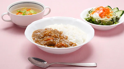 家庭の暖かさを感じさせ、万人に愛される料理・カレー。ニチイケアパレスでは毎月第4日曜日に、ニチイメゾンでは毎月第3日曜日に昼食にカレーを提供しています。季節の食材を活かしたこだわりのメニューをご用意し、選べるトッピング・バイキング形式など、サービスの方法にも一工夫を加えて、より楽しんでいただけるランチタイムを演出します。