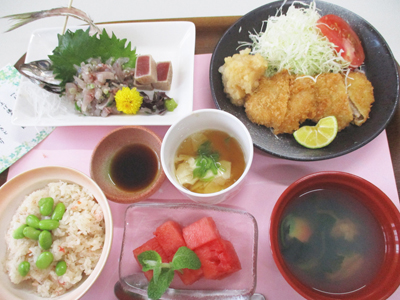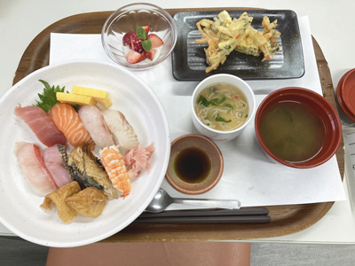 季節の食材を盛り込み、変化に富んだお食事をご用意しております。塩分調整、食事形態など、お体に合った食事を提供いたします。