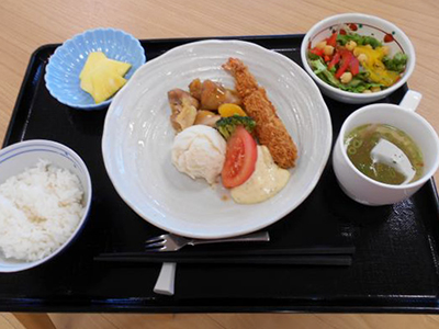 ご入居者様の体調やお体に合わせて、ソフト食、きざみ食などの対応が可能です。器や盛り付けに趣向をこらした目にもおいしい食事で、食べる歓びや、ご入居者様同士の団欒のひとときをお楽しみください。