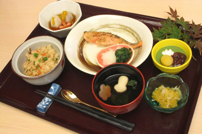 直営キッチンで作られるできたての食事は、管理栄養士監修のヘルシーメニューです。地産地消を意識して、信州の新鮮食材を使っています。