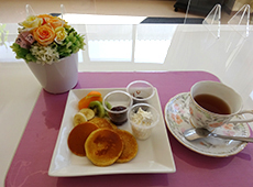 皆様のお体の状況に合わせて食事介助も行っております。病院の管理栄養士が栄養のバランスに配慮しながら、普通食、刻み食、 ペースト食に加え、糖尿食や腎臓食などの治療食も提供させていただいております。一日3食のお食事以外におやつ、お茶・珈琲・紅茶などの軽喫茶も楽しんでいただけます。(すべて追加費用はありません)