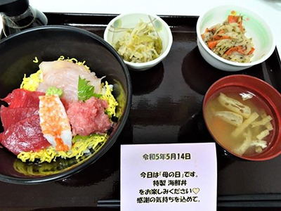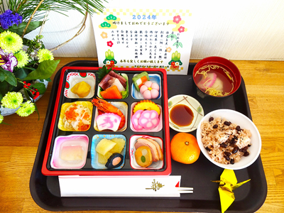季節やイベントに合わせた四季折々のメニューをお楽しみいただけます。特別食(きざみ等)や流動食・嚥下食にも対応します。